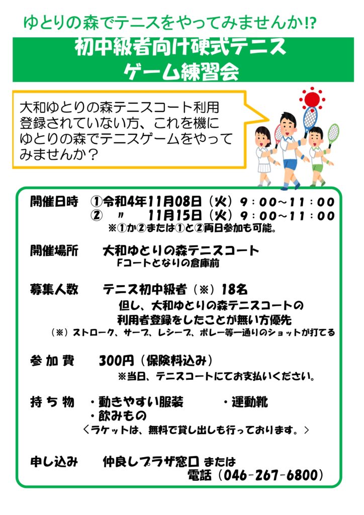 初中級者向け 硬式テニスゲーム練習会 11月8日(火),15日(火)