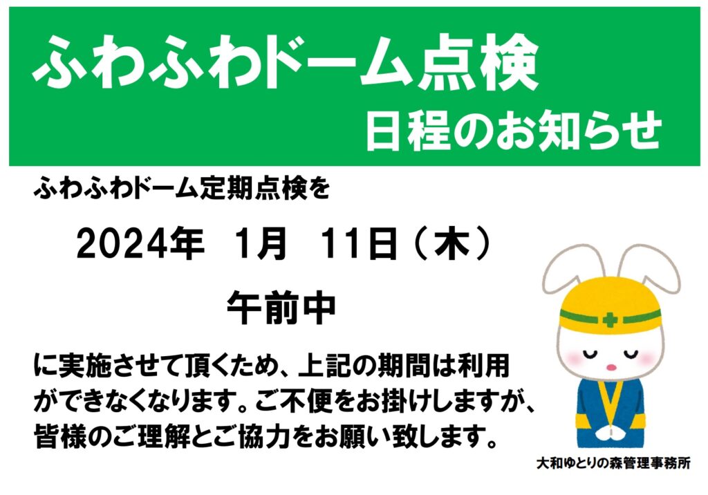 2024年1月11日(木)の午前中にふわふわドームの定期点検を行います。