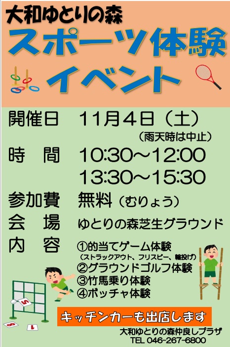 11月4日、芝生グラウンドで、スポーツ体験イベントを実施します♪