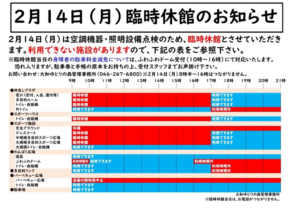 2月14日(月)臨時休館のお知らせ