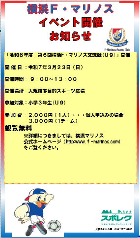 「令和6年度 第6回横浜F・マリノス交流戦(U9)」開催のお知らせ。