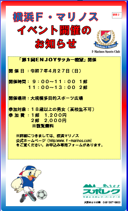 F・マリノス「第1回ENJOYサッカ-教室」 開催のお知らせ