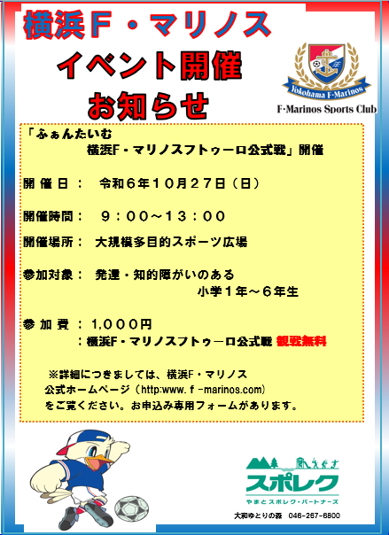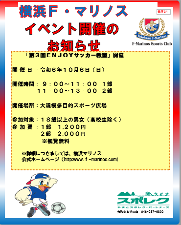 F・マリノス「第1回ENJOYサッカ-教室」 開催のお知らせ