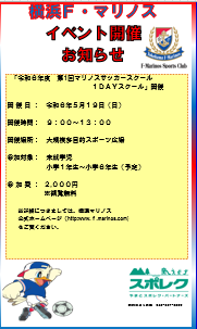 令和6年度 第1回マリノスサッカースクール1DAYスクール開催のお知らせ。