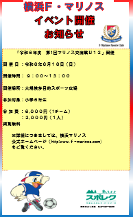 横浜F・マリノス「第5回横浜F・マリノス交流戦(U11)」雨天中止