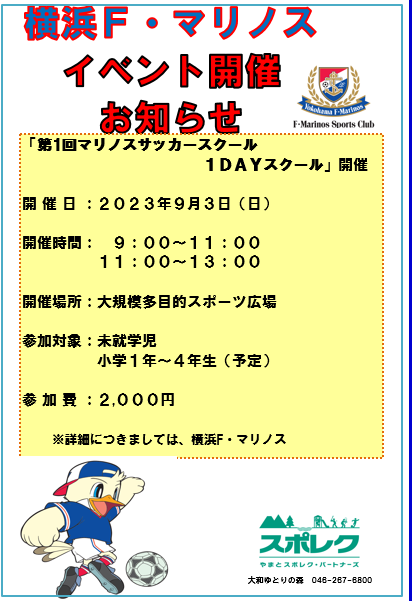 「マリノスサッカースクール1DAYスクール」開催のお知らせ。