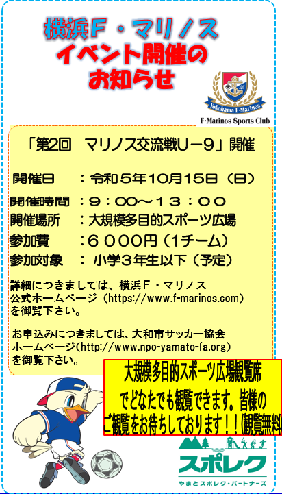 横浜F・マリノス「第2回マリノス交流戦U9」開催のお知らせ。