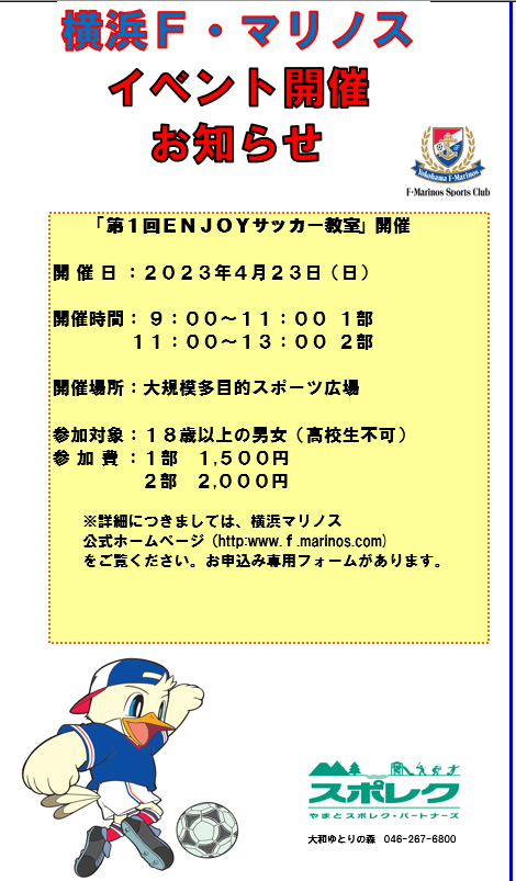 横浜F・マリノス「第1回ENJYOYサッカ-教室」開催のお知らせ。
