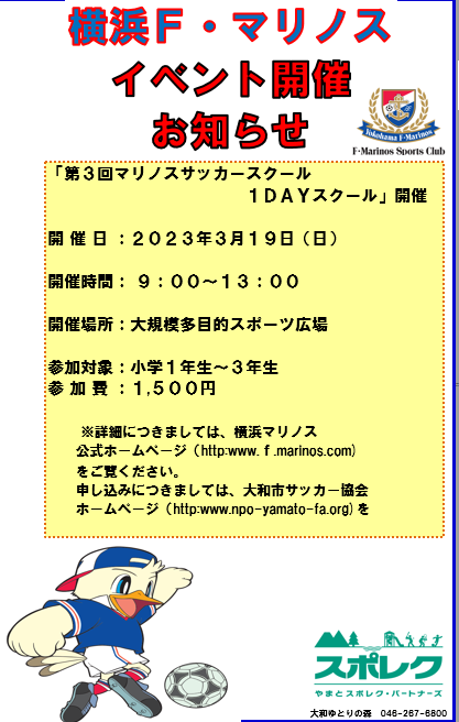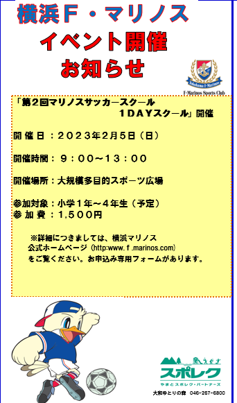 F・マリノス「第3回マリノスサッカースクール 1DAYスクール」開催のお知らせ。