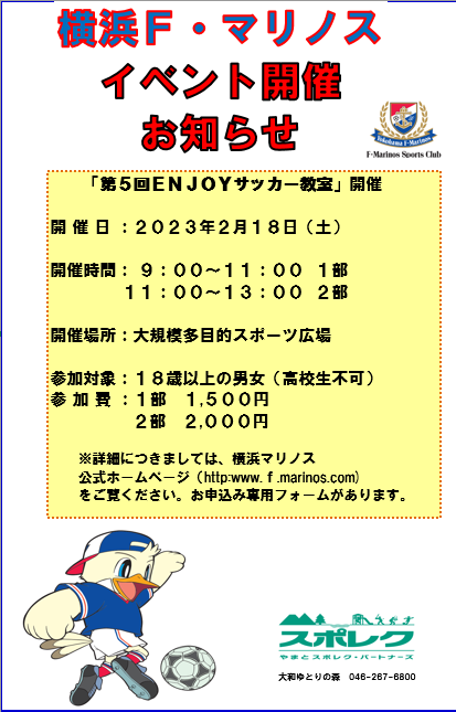 F・マリノス「第5回ENJOYサッカー教室」 開催のお知らせ。