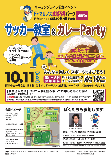 【ネーミングライツ記念イベント】10月11日(土)サッカー教室&カレーParty
