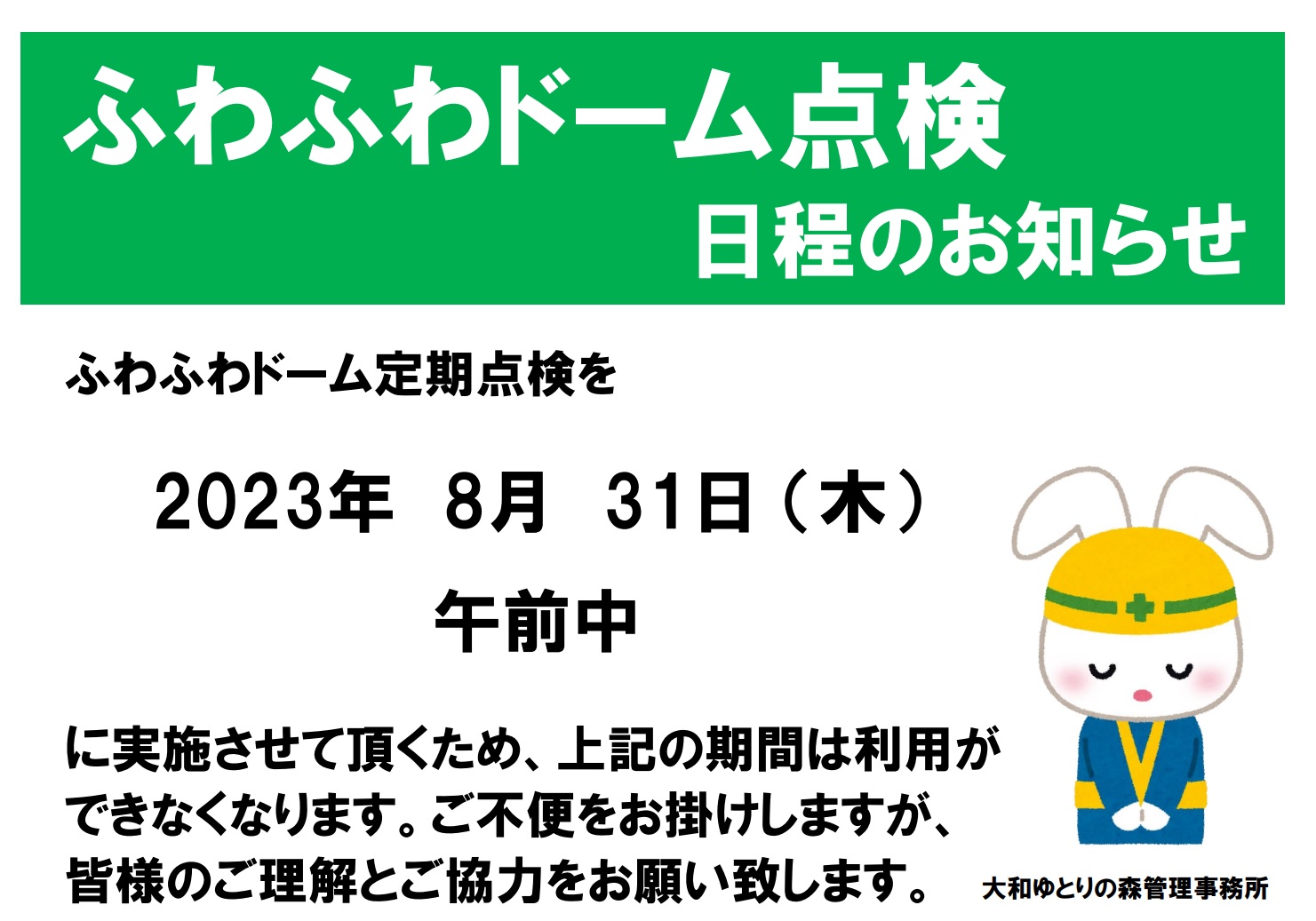 ふわふわドーム定期点検のお知らせ