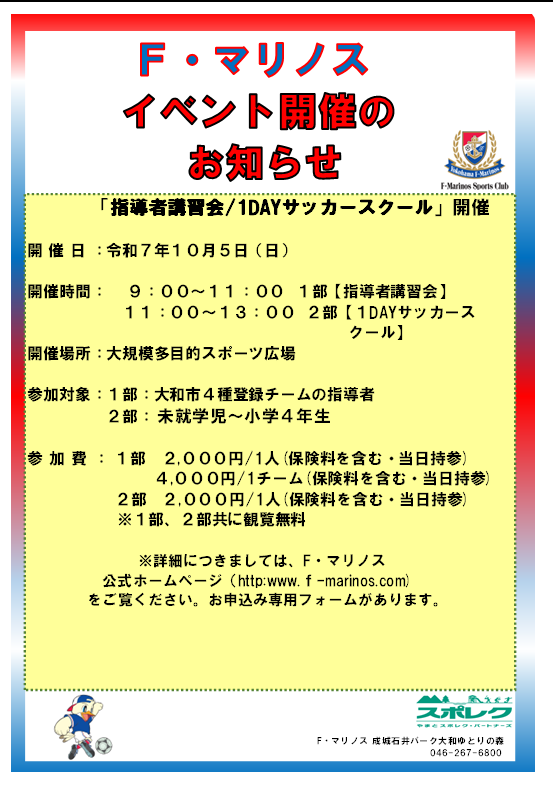 指導者講習会/1DAYサッカースクール 10月5日(日)